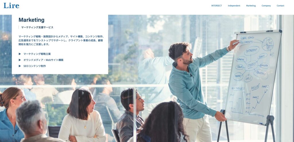 株式会社リレはマーケティング戦略立案からコミュニケーション設計、サイトデザイン・構築、SEOコンテンツ制作、広告運用、アクセス解析、改善施策推進までをワンストップで提供するマーケティング支援企業です。経験豊富なビジネスコンサルタント、マーケターを中心として、デザイナー、コーダー、ライターがワンチームとなってマーケティング施策をサポートします。これにより企業の新規顧客開拓や新規事業における市場参入などを包括的にサポートします。